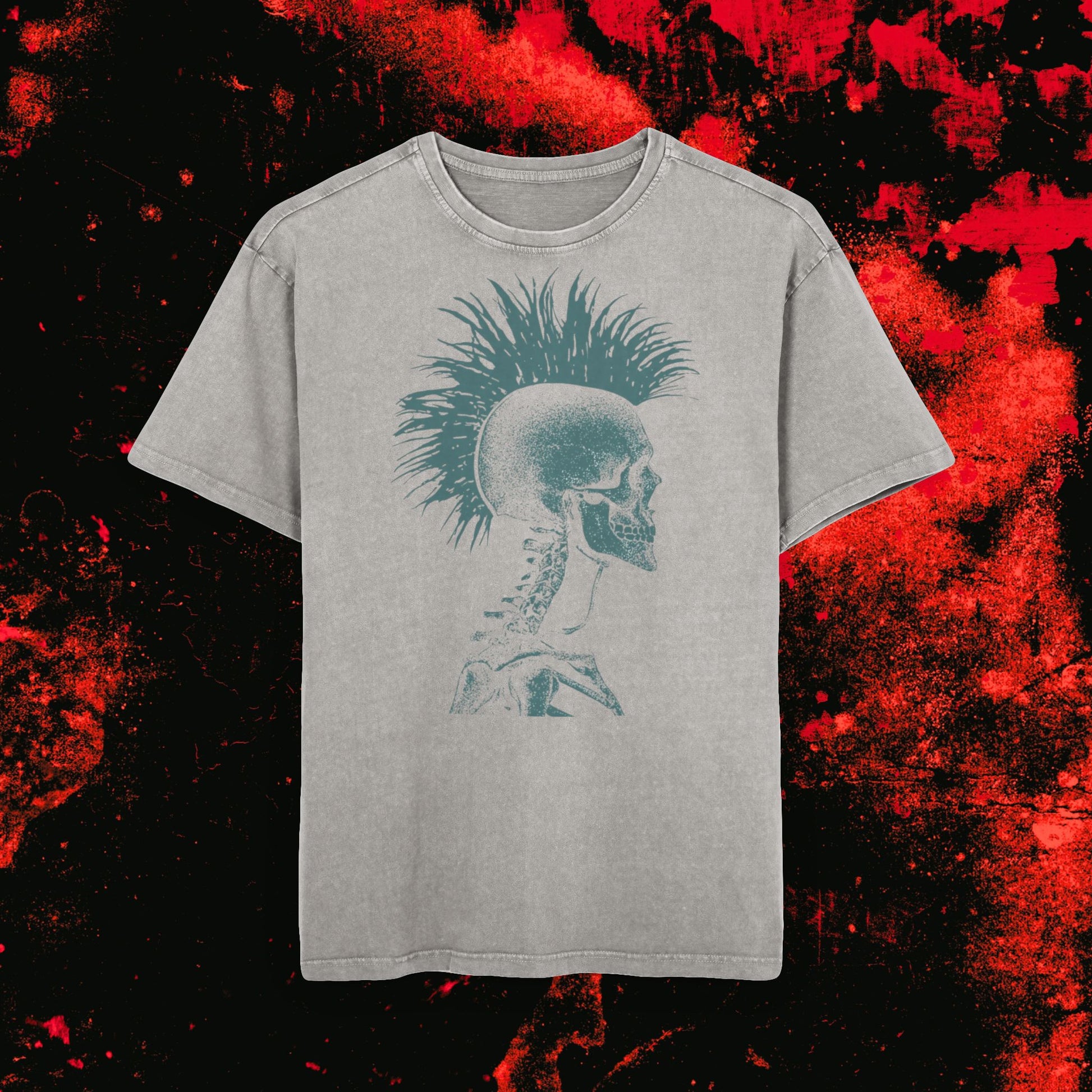 Punk Skull Graphic Tee, Casual Oversized T-Shirt, Vintage Acid Wash Shirt